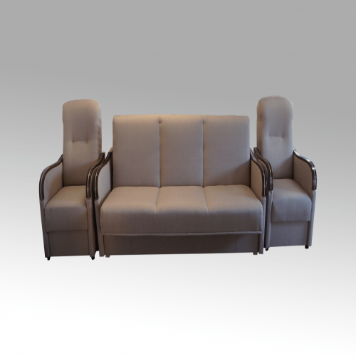 Komplet składa się z: kanapa Midas z bokami 5 cm oraz 2 fotele z bokami 5 cm. Boki mogą być ozdobione drzewem lub materiałem.